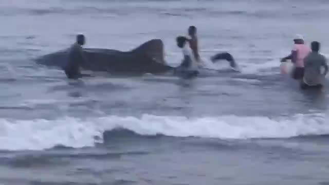 అచ్యుతాపురం మండలం తంతడి - వాడపాలెంలో మత్స్యకారులను ఓ తిమింగలం షాక్కు గురిచేసింది. వేటకు వెళ్లిన మత్స్యకారుల వలకు శుక్రవారం భారీ తిమింగలం చిక్కింది. 30 అడుగుల పొడవు, 6 అడుగుల వెడల్పు ఉండటంతో ఆందోళన చెందారు. ఆ తిమింగలం అనారోగ్యంతో ఉంది. ఒకవేళ అది అక్కడే చనిపోతే రోజుల తరబడి వచ్చే దుర్వాసన భరించలేమని, వేటకు కూడా వెళ్ళలేమని వెంటనే తొలగించడానికి అధికారులు చర్యలు తీసుకోవాలని మత్స్యకారులు అధికారులను కోరుతున్నారు.