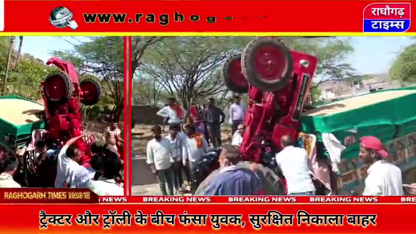 राघौगढ़ में ट्रैक्टर ट्रॉली के बीच फंसा युवक, सुरक्षित निकाला बाहर । Live Video