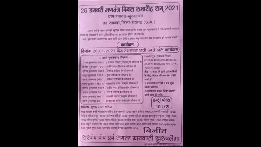 तमनार: ग्राम खुरूसलेगा में गणतंत्र दिवस के अवसर पर डांस प्रतियोगिता का होगा आयोजन