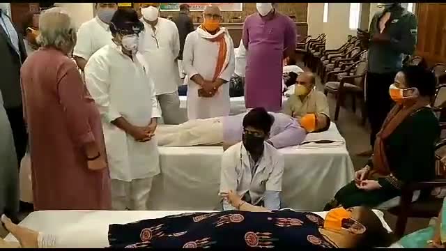मोदी सरकार के 7 वर्ष पूर्ण होने पर वाराणसी के आईएमए भवन में बीजेपी कार्यकर्ताओं ने किया रक्तदान