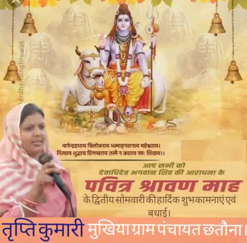 तृप्ति मुखिया ग्राम पंचायत छतौना। आप सभी को पवित्र श्रावण माह के द्वितीय सोमवारी की हार्दिक शुभकामनाएं एवं बधाई।