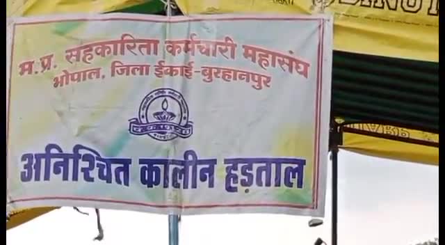 बुरहानपुर नगर: खंडवा रोड स्थित कृषि उपज मंडी में सहकारिता कर्मचारियों की अपनी प्रमुख मांगों को लेकर हड़ताल जारी