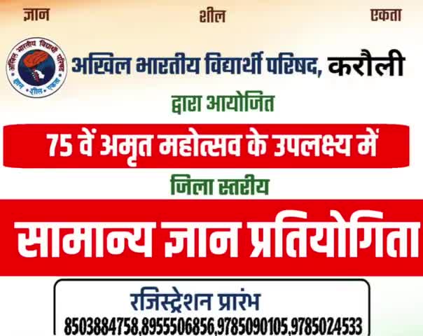 अखिल भारतीय विधार्थी परिषद करौली द्वारा आयोजित जिला स्तरीय सामान्य ज्ञान प्रतियोगिता आज हिण्डौन के JB पूर्वांचल स्कूल में कराई गयीं ABVP karauli yogendra dagur sherpur