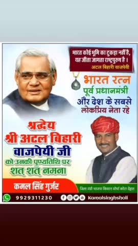 भारत रत्न भारत के पूर्व प्रधानमंत्री और इस देश के सबसे लोकप्रिय नेता रहे अटल बिहारी जी वाजपेयी को पुण्यतिथि पर सादर वंदन।