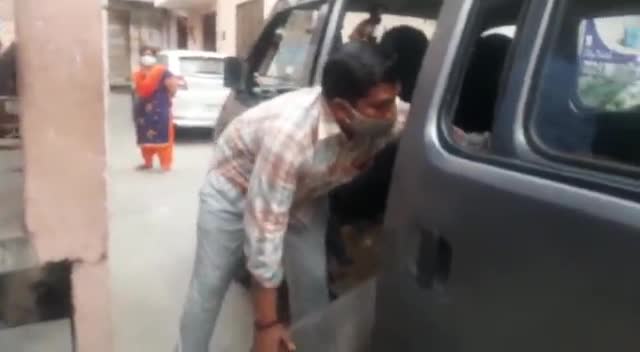 hapur शहर अध्यक्ष अभिषेक गोयल की मदद से लोगों को ऑक्सीजन सिलेंडर पहुंचाते हु विक्की शर्मा कांग्रेस