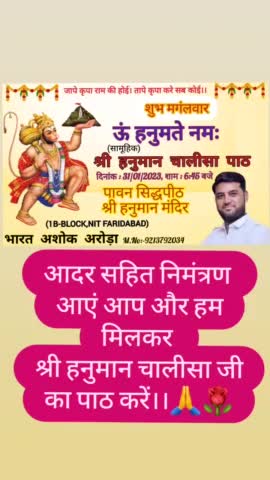 ЁЯМ╣ЁЯЩПрдЖрджрд░ рд╕рд╣рд┐рдд рдирд┐рдордВрддреНрд░рдг ЁЯЩПЁЯМ╣ рдЖрдПрдВ рдЖрдк рдФрд░ рд╣рдо рдорд┐рд▓рдХрд░ #рд╢реНрд░реА_рд╣рдиреБрдорд╛рди_рдЪрд╛рд▓реАрд╕рд╛_рдЬреА рдХрд╛ рдкрд╛рда рдХрд░реЗрдВред