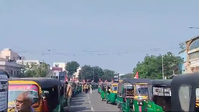 चंद्रबाबू नायडू सरकार वादा खिलाफी के विरोध में विजयवाडा आंध्र प्रदेश में इफ्तू के नेतृत्व में ऑटो चालकों की रैली
