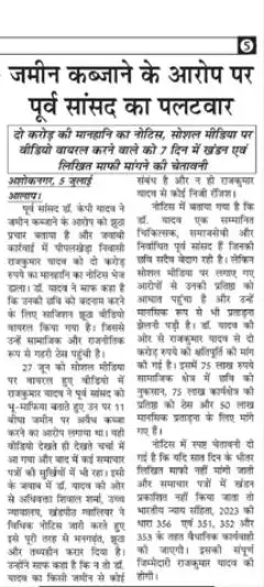 🔹 सच्चाई को झूठ के पर्दे में नहीं छुपाया जा सकता 🔹 कुछ दिनों पूर्व हमारे माननीय पूर्व सांसद डॉ. कृष्णपाल सिंह यादव जी पर यह झूठा और निराधार आरोप लगाया गया कि वे किसी भूमि पर अवैध रूप से कब्ज़ा कर रहे हैं। जबकि सच्चाई यह है कि संबंधित भूम