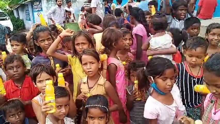 धनबाद के पूर्व मेयर भाजपा नेता श्री चंद्रशेखर अग्रवाल जी के सौजन्य से बच्चों के बीच मैंगों जूस बाँटा गया..@