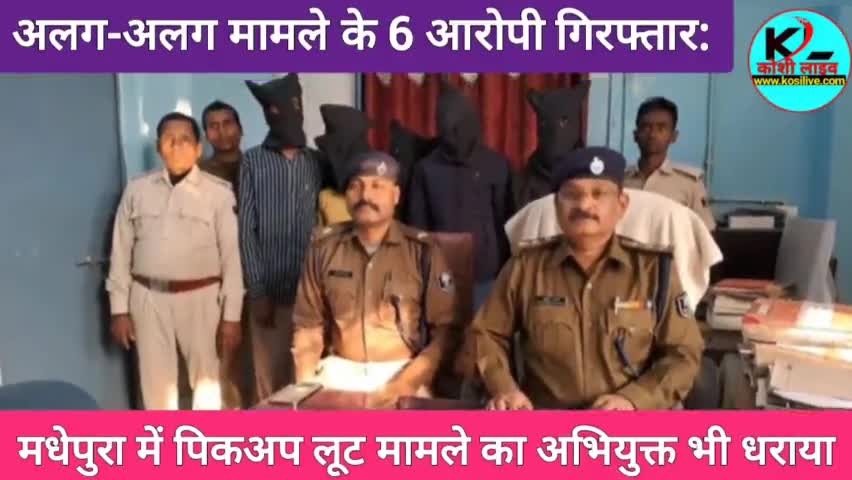 मधेपुरा:अलग-अलग मामले के 6 आरोपी गिरफ्तार:मधेपुरा में पिकअप लूट मामले का अभियुक्त भी धराया,