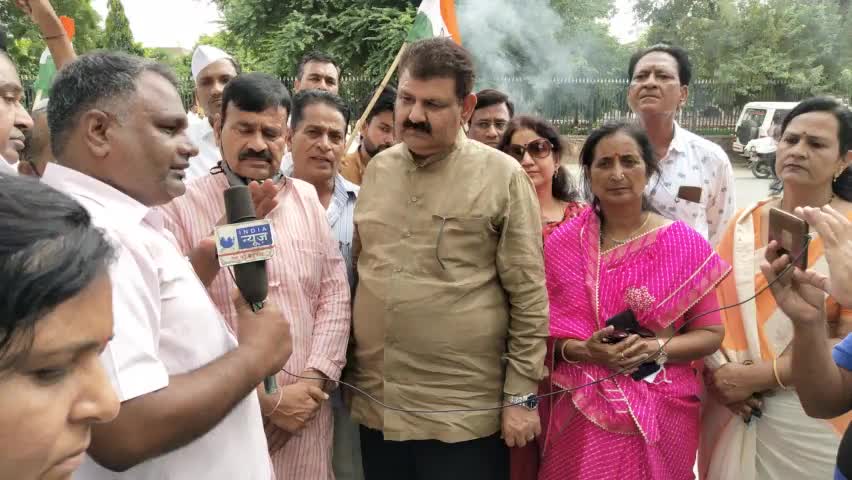 लखीमपुर खीरी में "किसान नरसंहार एवं भाजपाई तानाशाही के खिलाफ जिला कांग्रेस कार्यालय भीलवाड़ा से कलेक्ट्रेटरी तक पैदल सत्याग्रह