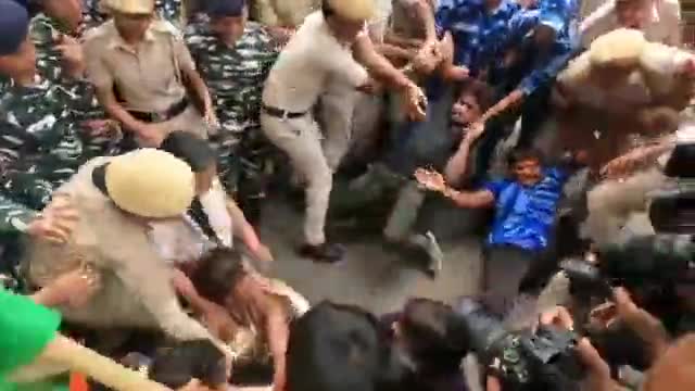 दिल्ली के जंतर मंतर पर धरना दे रही महिला पहलवानों को पुलिस घसीट कर ले जा रही है यह देश का लोकतंत्र है।
