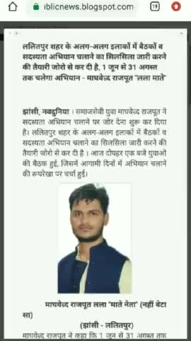 ललितपुर: ललितपुर शहर के अलग-अलग इलाकों में 1 जून से 31 अगस्त तक चलेगा सदस्यता अभियान - माघवेन्र्द राजपूत "लला माते"