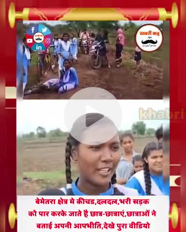 CG BREAKING-बेमेतरा क्षेत्र मे कीचड,दलदल,भरी सड़क को पार करके स्कूल जाते है छात्र-छात्राएं,छात्राओं ने बताई अपनी आपभीति