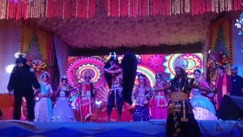 असरगंज: असरगंज के सरस्वती स्थान मंदिर के प्रांगण में चैती दुर्गा पूजा के शुभ अवसर पर आए बिंद्रावन से कलाकार आज जोरदार कला दिखाया