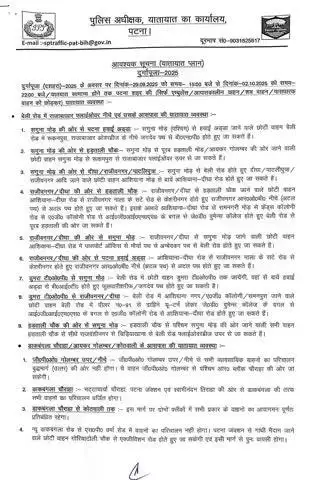 जिला प्रशासन, पटना द्वारा दुर्गा पूजा के अवसर पर लोगों की सुविधा को ध्यान में रखते हुए ट्रैफिक प्लान जारी किया गया है। आम जनता से जनहित में अपील है कि इसका अनुपालन करें। #Dussehra #Dussehra2025 #DussehraMahotsav
