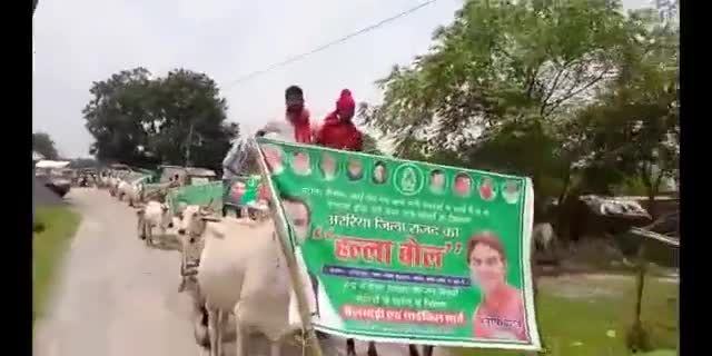 मनीष यादव के नेतृत्व में महंगाई के खिलाफ़ नरपतगंज में राजद का विशाल बैलगाड़ी मार्च।