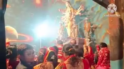 पंडालों में विराजमान मां दुर्गा समेत अन्य प्रतिमाओं के पट वैदिक मंत्रोच्चार के बीच सोमवार को खुल गए. इस क्रम में मंगलवार को दोपहर बाद अपनी सुविधा के अनुसार दूर दराज से लोगों का आने का सिलसिला कायम हो गया है. पूरा नगर भक्तिमय माहौल में रंग गया है. यह तस्वीर मंगलवार को नगर के विभिन्न पंडालून में लगभग 7:30 बजे अपराह्न में ली गई है.