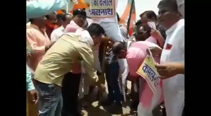 भारतीय जनता पार्टी नगर मंडल द्वारा हिंदुस्तान के गद्दार चाइना के दलाल मध्य प्रदेश के पूर्व मुख्यमंत्री कमलनाथ का पुतला द