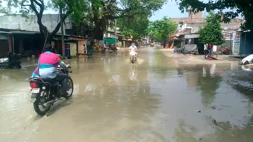 गोरेयाकोठी: सिवान मॉझी बरौली मेन रोड लधी बाजार हल्की बारीस मे डूबने लगा,दुकान की जमीन धंसी