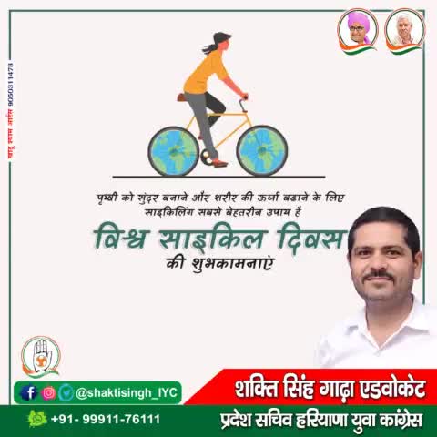" विश्व साइकिल दिवस "पर सबको शुभकामनाएं! साइकिल सम्पूर्ण विश्व में परिवहन का एक ऐसा साधन है जो समाज के आख़िरी व्यक्ति तक अपनी पहुंच रखता है,ये मानवीय विकास एवं प्रगति के इतिहास में पर्यावरण के साथ सौहार्द बनाए रखते हुए आगे बढ़ते रहने का द