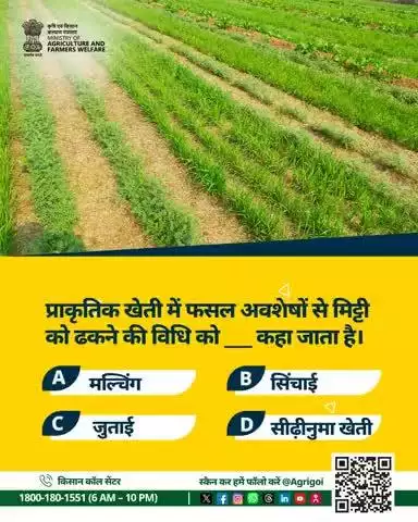 प्राकृतिक खेती में फसल अवशेषों से मिट्टी को ढकने की विधि को _________ कहा जाता है? #AgriGoI #AgriQuiz #NaturalFarming