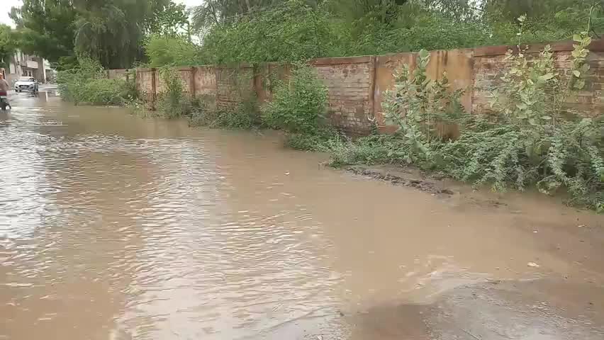 जैतसर में जल संसाधन विभाग के सहायक अभियंता कार्यालय के आगे जमा हुआ बारिश का पानी
