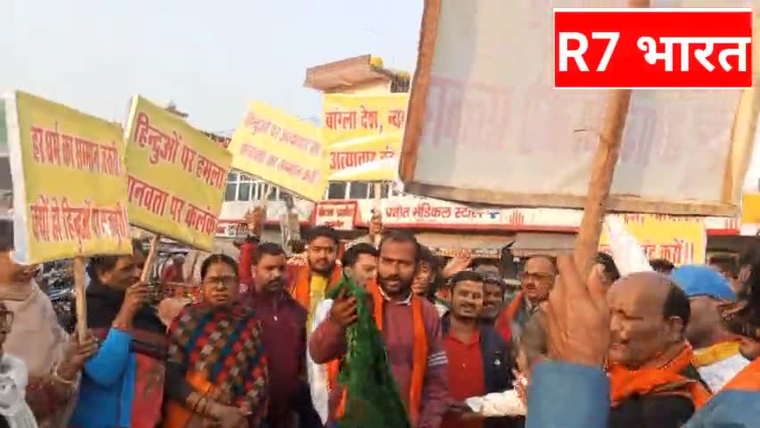 बांग्लादेश में हो रहे हिंसा के खिलाफ बजरंग दल ने नारेबाजी की