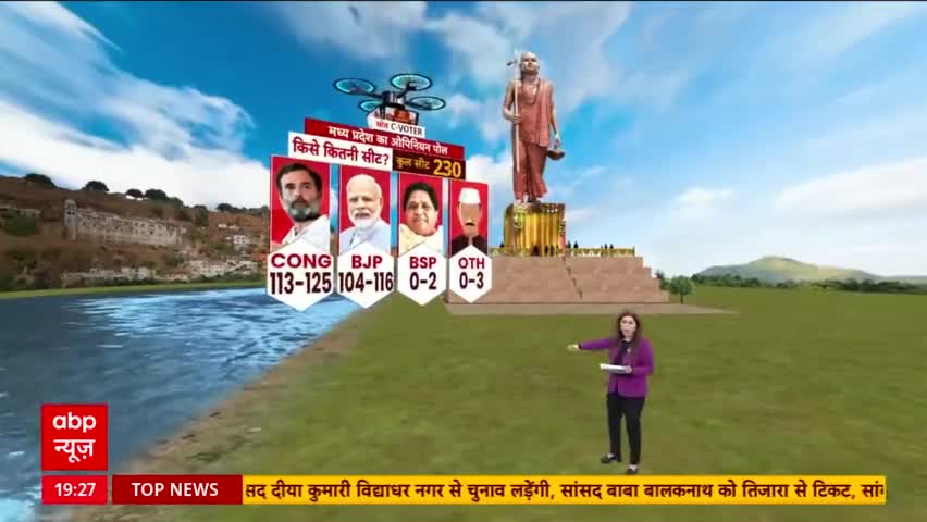 *ABP News ओपिनियन पोल,* *—मध्यप्रदेश में कांग्रेस को पूर्ण बहुमत;* कांग्रेस - 125 सीट बीजेपी - 104 सीट अन्य - 0 से 2