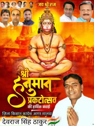 श्री हनुमान प्रकोटोत्सव जयंती की हार्दिक हार्दिक बधाई। जय श्री जय श्री राम, जय हनुमान। देवराज सिंह ठाकुर जिला अध्यक्ष किसान कांग्रेस आगर मालवा मध्य प्रदेश
