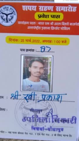 * परम पूज्य महंत श्री योगी आदित्यनाथ जी के दोबारा मुख्यमंत्री पद की शपथ ग्रहण समारोह में मेरा प्रवेश पास