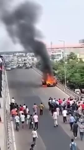 कार को जलते देख सामने खड़े तमाशा देख रहे लोगो को कार ने कहा जरा पास से देखो नही तो मैं खुद ही आप के पास आती हूं ,,,,,,, 🤦☺️🤣🤣🏃🏃