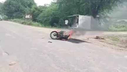 बुलेट में लगी आग 💥💥💥 #महोबा कानपुर -सागर राष्ट्रीय राजमार्ग पर सदर कोतवाली क्षेत्र के मामला तिगेला के पास की घटना।