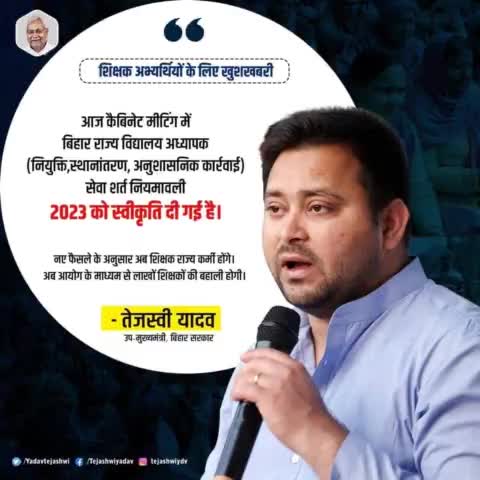 शिक्षक अभ्यर्थियों के लिए खुशखबरी है। बिहार में अब बहुत जल्दी ही लगभग 2,25,000 तथा कुल 3 लाख शिक्षकों की नियुक्ति होगी। शिक्षकों को राज्यकर्मी का दर्जा दिया जाएगा जिसमें आकर्षक वेतन के साथ सभी सुविधाएं प्रदान की जाएगी।