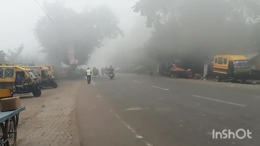 बाराबंकी शहर मे सुबह से ही घना कोहरा छाया रहा। सुबह 9 बजे पुलिस लाइन चौराहे के निकट का एक दृश्य।