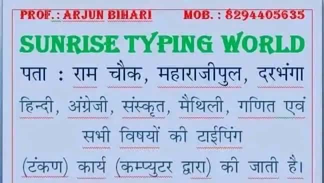 हिंदी अंग्रेजी संस्कृत मैथिली टाइपिंग के लिए संपर्क करें संपर्क सूत्र 8294405635 एक सौ प्रतिशत शुद्ध टाइपिंग