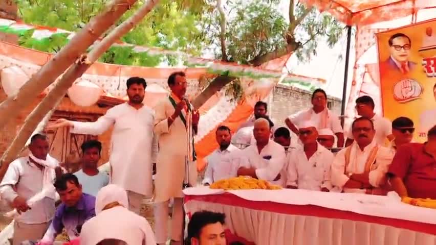 भदोही के गंगारामपुर में संविधान बचाओ सम्मेलन कार्यक्रम को संबोधित करते कांग्रेस कमेटी भदोही के जिला महासचिव जजलाल राय