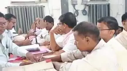 हसपुरा: प्रखंड कार्यालय के सभा कक्ष में मतदाता सूची को अंतिम रूप देने में लगे बीएलओ