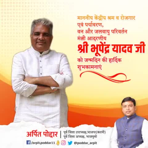 कुशल संगठनकर्ता एवं भाजपा परिवार के वरिष्ठ सदस्य, माननीय केंद्रीय मंत्री श्री भूपेंद्र यादव जी को जन्मदिन की हार्दिक शुभकामनाएं💐 ईश्वर से आपके उत्तम स्वास्थ्य व सुदीर्घ जीवन की प्रार्थना करता हूँ।