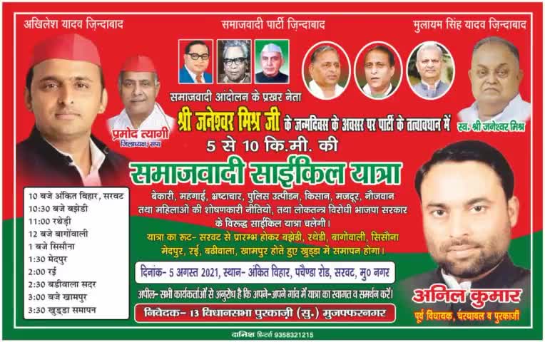 कृपया सभी कार्यकर्ता 5 तारीख की साइकिल यात्रा में पहुंचने का कष्ट कर।