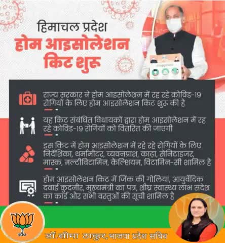 हिमाचल प्रदेश सरकार ने होम आइसोलेशन में रहने वाले कोविड-19 के मरीजों के लिए होम आइसोलेशन किट शुरू की ll