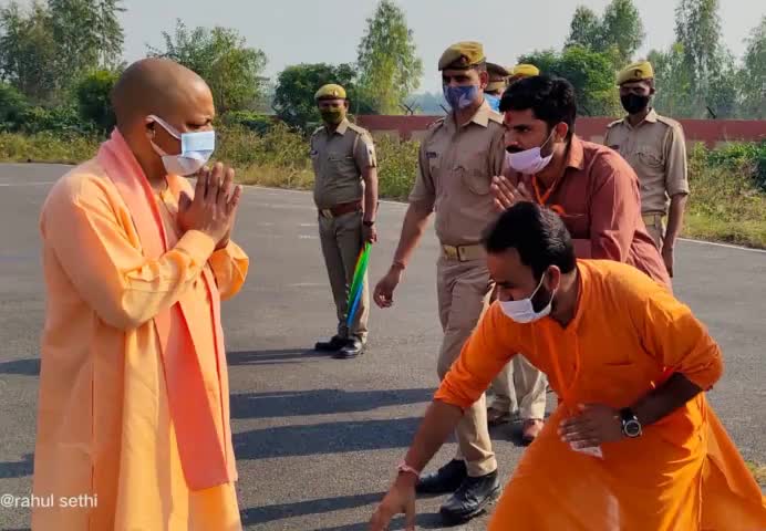 परम पूज्य महंत योगी आदित्यनाथ महाराज जी के मुरादाबाद आगमन पर मुडांपाड़े हवाई पट्टी पर स्वागत एवं अभिनंदन किया