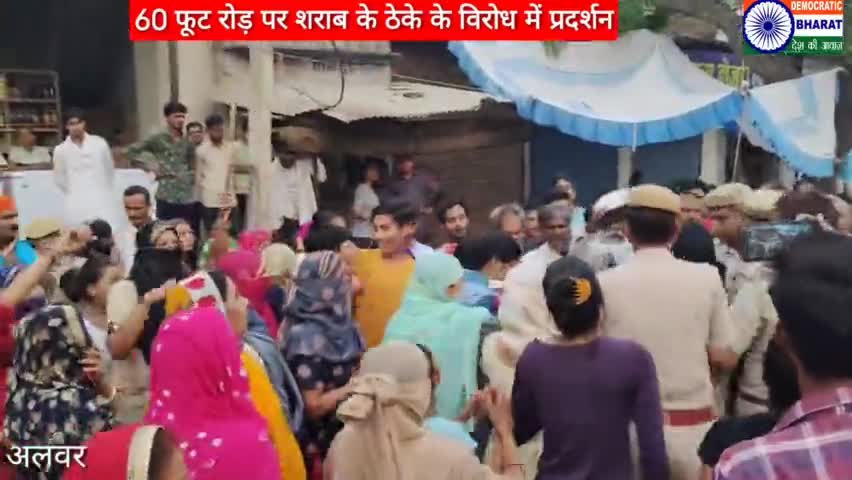 अलवर: अलवर के 60 फूट रोड़ पर शराब का ठेका खुलने के विरोध में इलाके की महिलाओं का प्रदर्शन।