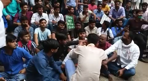 ऑफलाइन कक्षाओं की बहाली हेतु जारी अनिश्चितकालीन धरना प्रदर्शन के चौथे दिन NSUI के साथियों ने सिर मुंडवाकर अपना विरोध प्रदर्शन दर्ज कराया। ऑफलाइन कक्षाएं बहाल करो। #ReopenAU