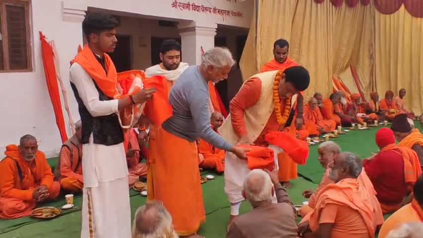 88,000 ऋषियो की पावन धरा नैमिषारण्य तीर्थ पर वस्त्र वितरित करते श्री प्रेम शंकर पाण्डेय, आ• हरिओम शुक्ल व ईशान त्रिवेदी