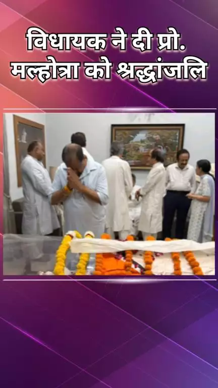 विधायक श्याम शर्मा आज भाजपा के वरिष्ठ नेता प्रो. विजय कुमार मल्होत्रा जी के निधन पर उनके पार्थिव शरीर के दर्शन करने पहुंचे। उन्होंने श्रद्धांजलि अर्पित की और परिवार के प्रति संवेदना व्यक्त की। प्रो. मल्होत्रा जी का समर्पण, साधारण जीवन और निःस्वार्थ जनसेवा हमेशा प्रेरणा देगी। विधायक श्याम शर्मा ने प्रार्थना की कि ईश्वर उनकी आत्मा को शांति दें।