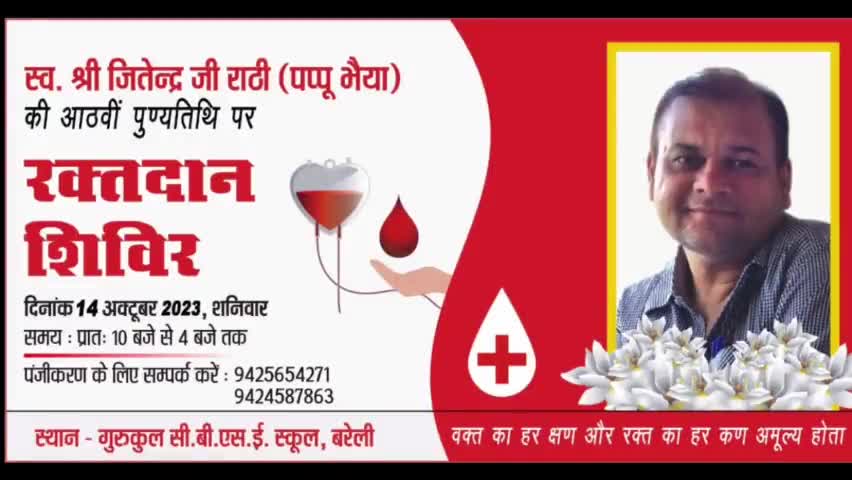 बरेली: नगर के गुरुकुल स्कूल में 14 अक्टूबर 2023 को रक्तदान शिविर का किया जाएगा आयोजन