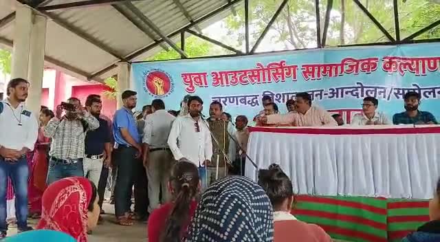 आउटसोर्स कर्मचारियों का नीलम पार्क भोपाल मे हजारो की संख्या मे प्रदर्शन