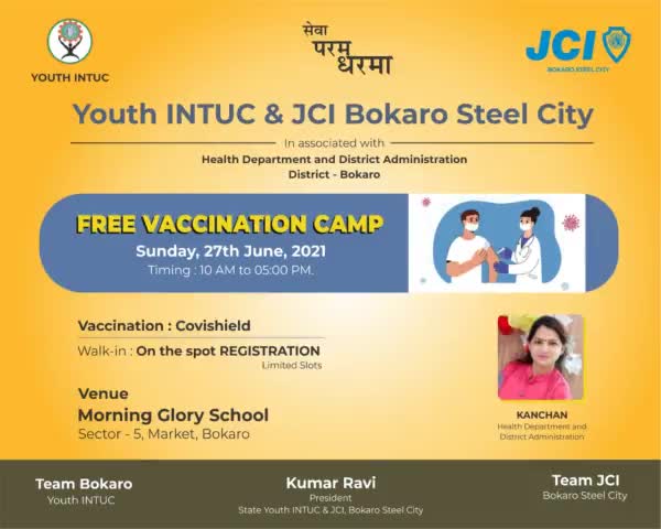 💐 * यूथ इंटक बोकारो झारखंड * 💐 * सभी 18+ के लोगो के लिए निशुल्क💉 *वैक्सीन संपर्क सूत्र 8873024815