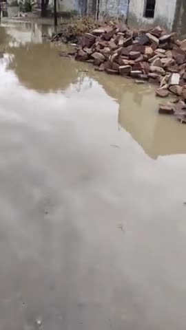 भालेलाव लिंक रोड पर भरा पानी और घरों में घुसा पानी